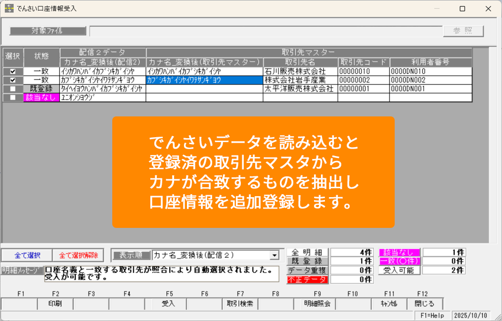 インターネットバンキングからダウンロードした債権情報を電債の達人に受け入れできます。